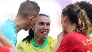 Brazil were level when Marta was sent off just before half-time, with Spain scoring in the 68th minute and then