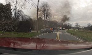 Footage from a dashboard camera shows a volunteer fire chief dragging the unresponsive driver from his car following a collision.